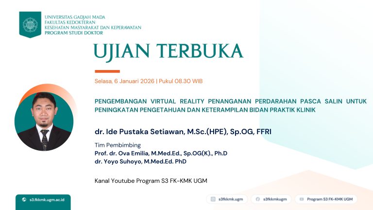 Program Studi Doktor Ilmu Kedokteran dan Kesehatan FK-KMK UGM meluncurkan Kanal Pengetahuan S3 sebagai wadah berbagi ilmu dari kegiatan akademik kepada masyarakat praktisi. Kanal ini menjadi bagian dari komitmen program studi dalam mengalirkan ilmu pengetahuan sebagai kontribusi nyata bagi kemanusiaan. Video pengantar Ketua Program Studi menandai peluncuran kanal ini, sekaligus menjadi simbol semangat “menara air” — menjadikan pengetahuan yang dihasilkan mengalir ke seluruh penjuru. Konten kanal mencakup kuliah tamu, ujian terbuka, dan akan terus dikembangkan di masa mendatang.