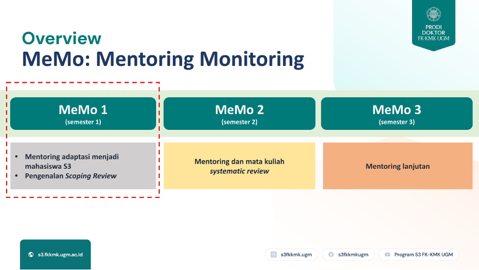 - Menemani, mendampingi mentee pada semester pertama studi S3,